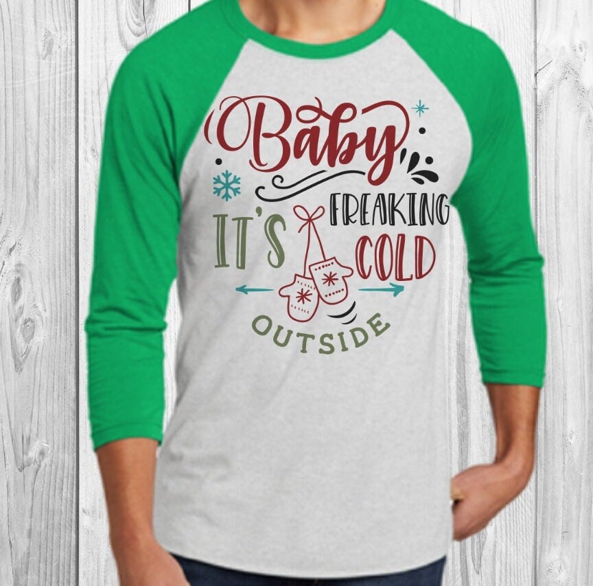 Baby It's Freaking Cold Outside Raglan Style Shirt, Christmas Shirt, Funny Christmas Tee Baseball T-Shirt, Unisex Tee.