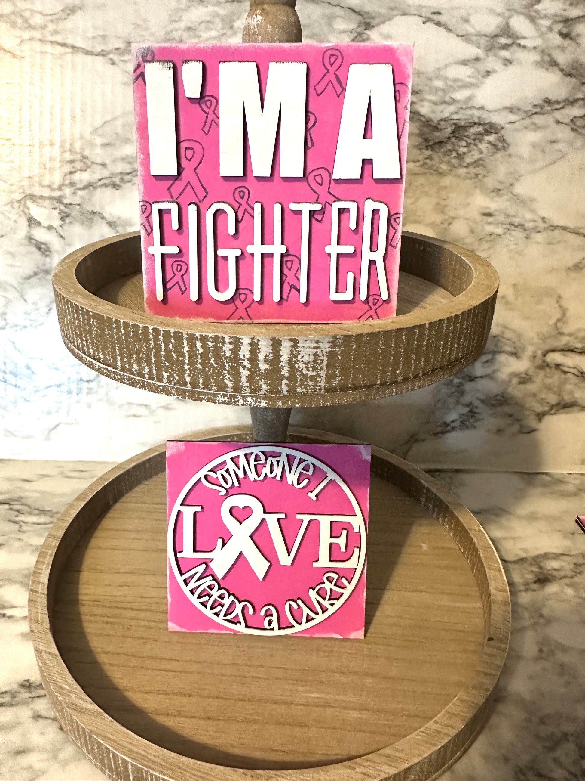 These laser-cut and engraved wood squares feature a pink ribbon to symbolize the fight against breast cancer. The expertly painted design adds a touch of class and aesthetic appeal, making these wood squares perfect for a variety of display and decor purposes.