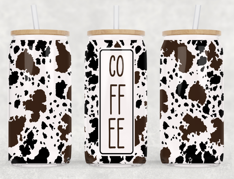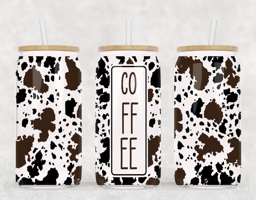 16 oz Clear or Frosted Glass Cup with Bamboo Lid and straw.