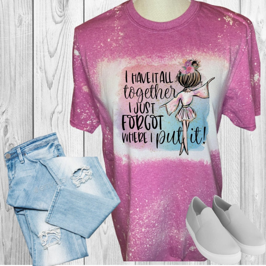 I HAVE IT ALL TOGETHER I JUST FORGOT WHERE I PUT IT Bleached T-Shirt Distress Shirt Vintage Style T-Shirt Woman's Tee Custom T-Shirt Personalized Bleached Tee.
