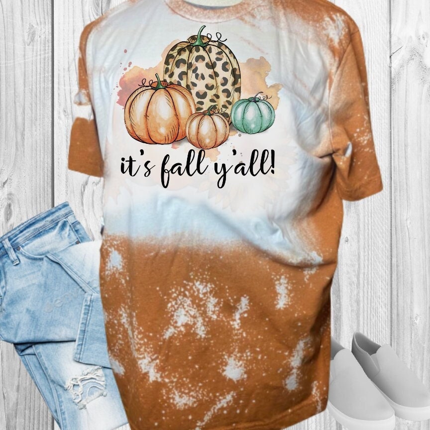 IT'S FALL Y'ALL Leopard Teal Pumpkins Bleached T-Shirt Distress Shirt Vintage Style T-Shirt Woman's Tee Custom Bleached Tee.