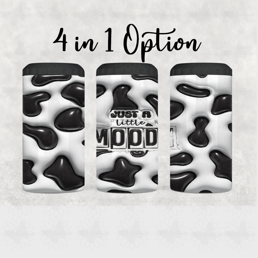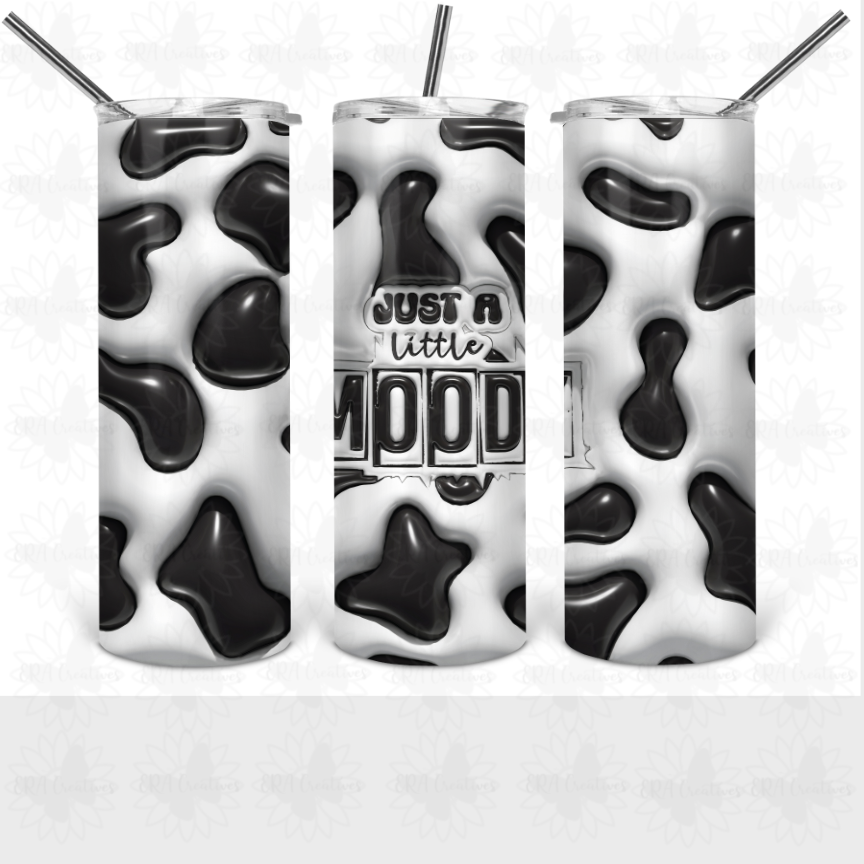 Stay hydrated in style with the Just a Little Moody Puff Tumbler. This stainless steel tumbler features a distinctive cow print that will make you stand out from the crowd. Enjoy hot or cold drinks throughout the day that stay at their optimum temperature with the double-walled insulation technology.