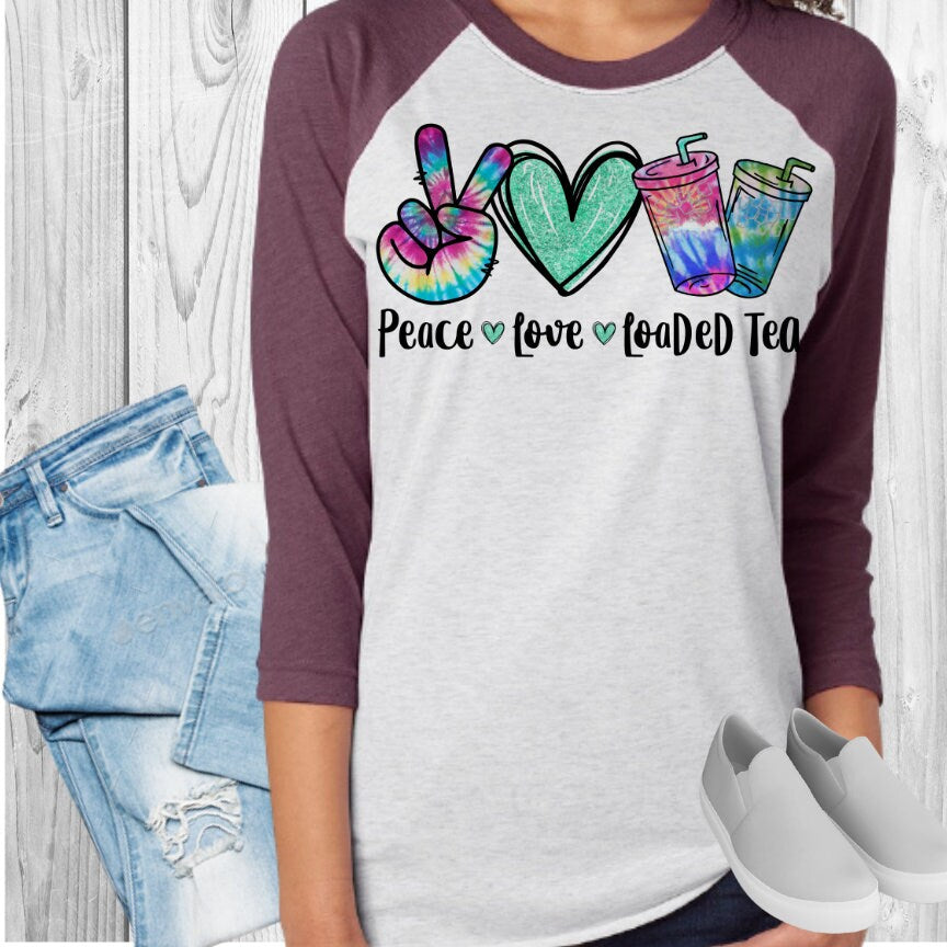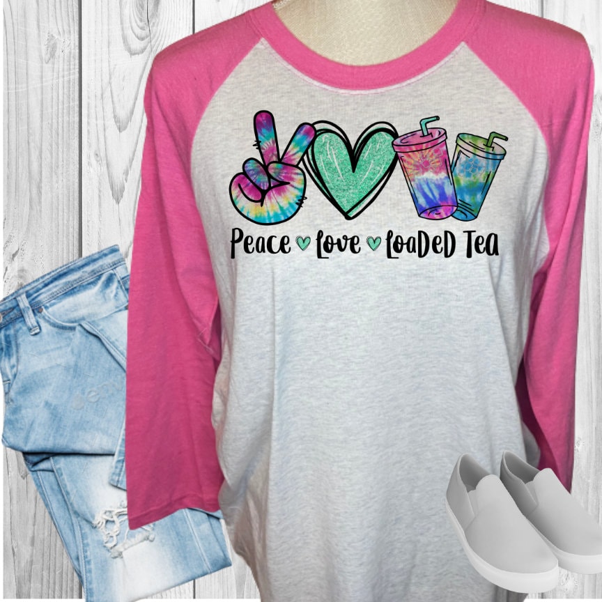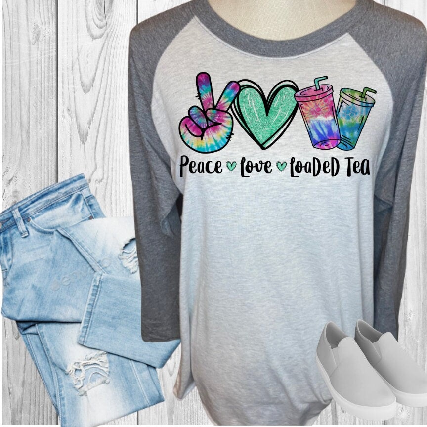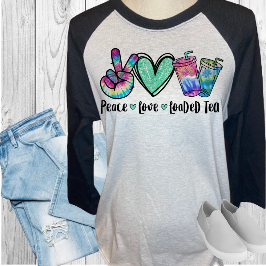 PEACE LOVE LOADED TEA Raglan Style Shirt Baseball T-Shirt Women's Tee Raglan Tee Colored T-Shirt Personalized Shirt Custom Tee
