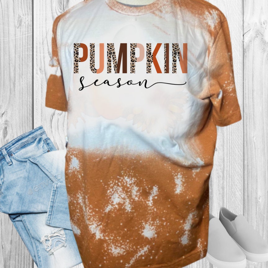 PUMPKIN SEASON Fall Bleached T-Shirt Distress Shirt Vintage Style T-Shirt Woman's Tee Custom Bleached Tee.