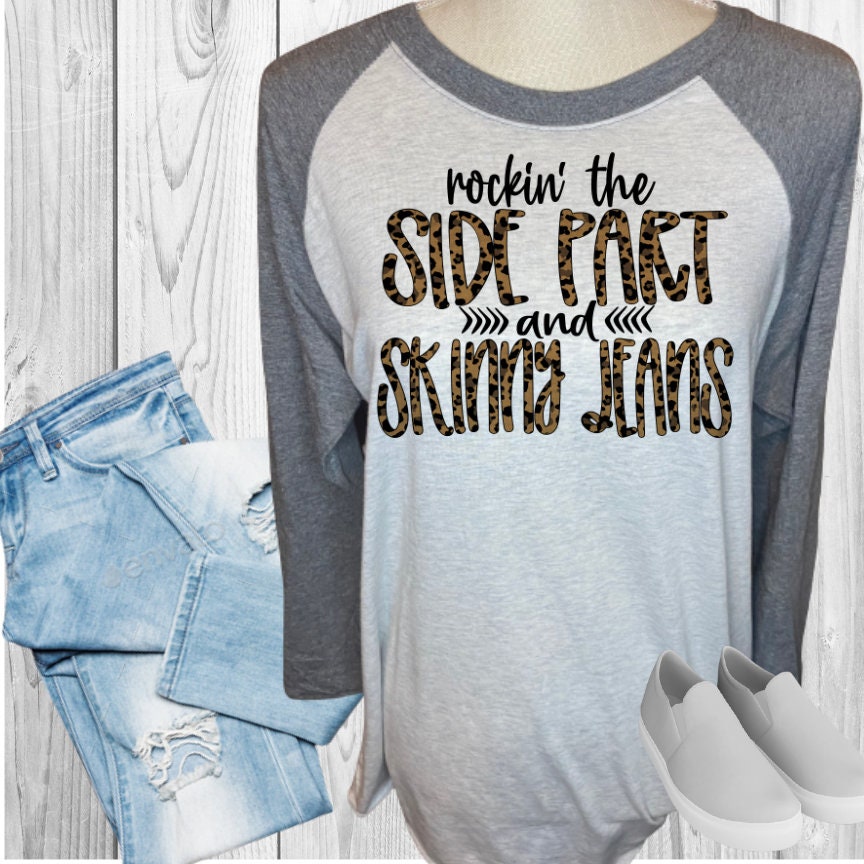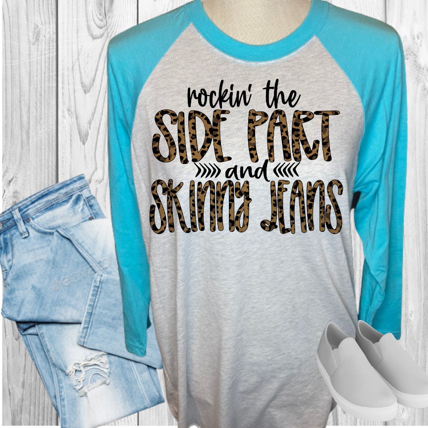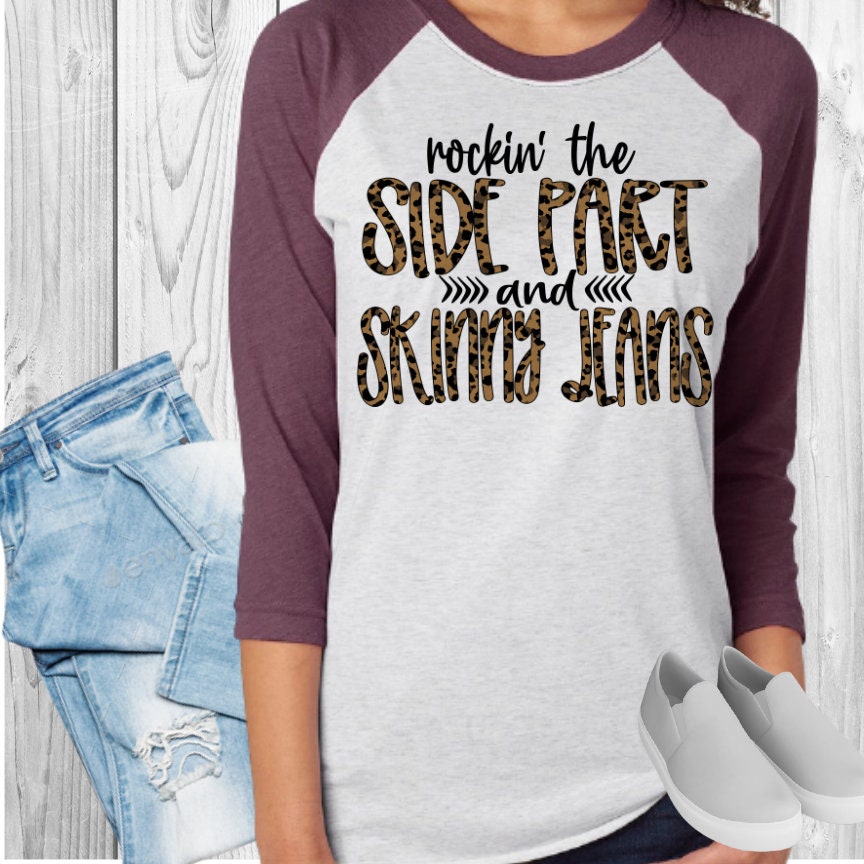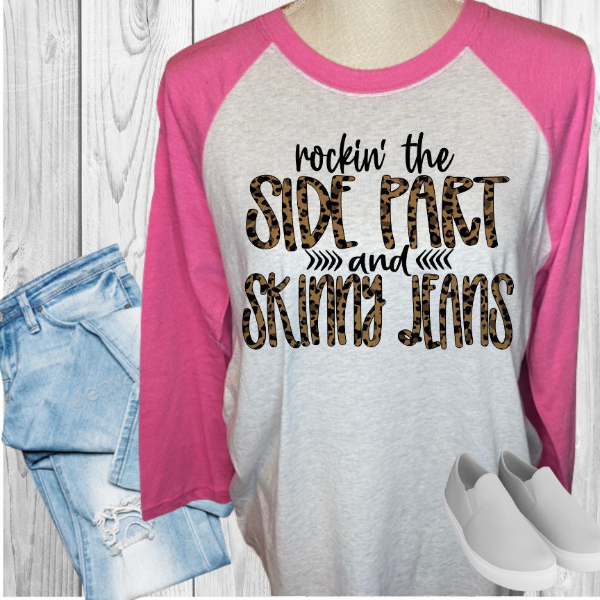 ROCKING THE SIDE PART AND SKINNY JEANS Raglan Style Shirt Baseball T-Shirt Women's Tee Raglan Tee Colored T-Shirt Personalized Shirt Custom Tee