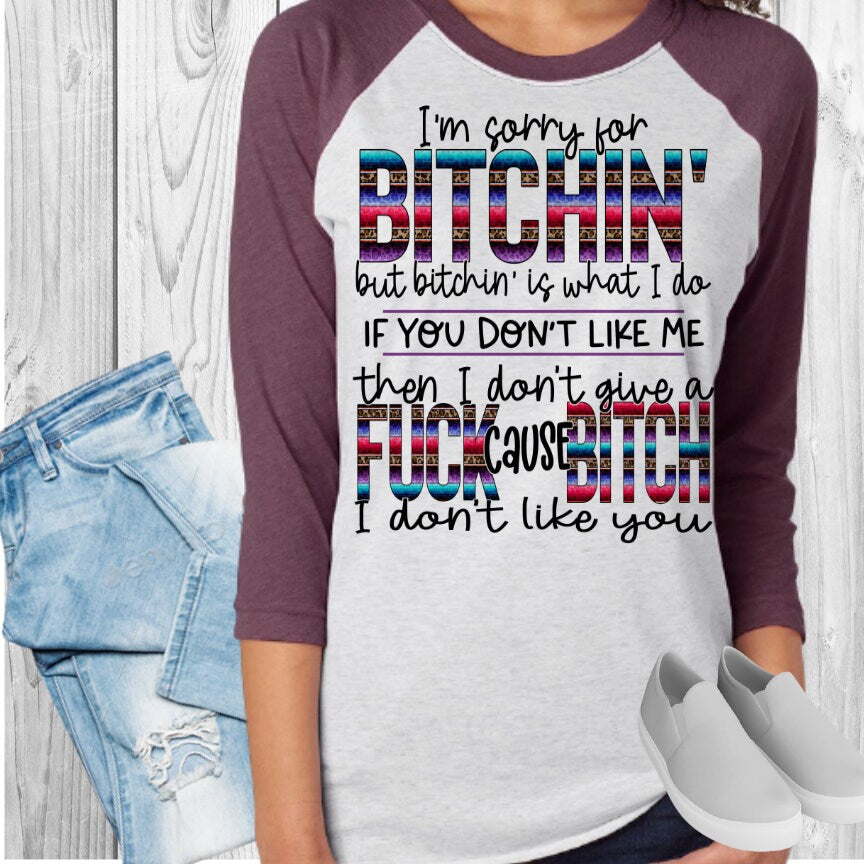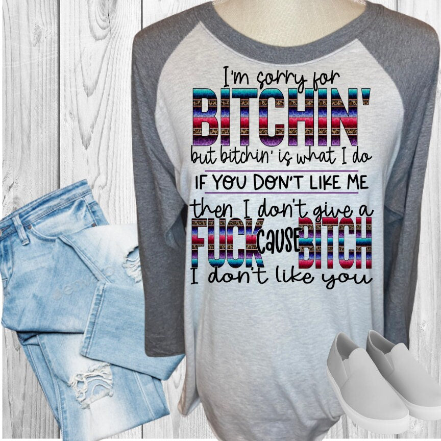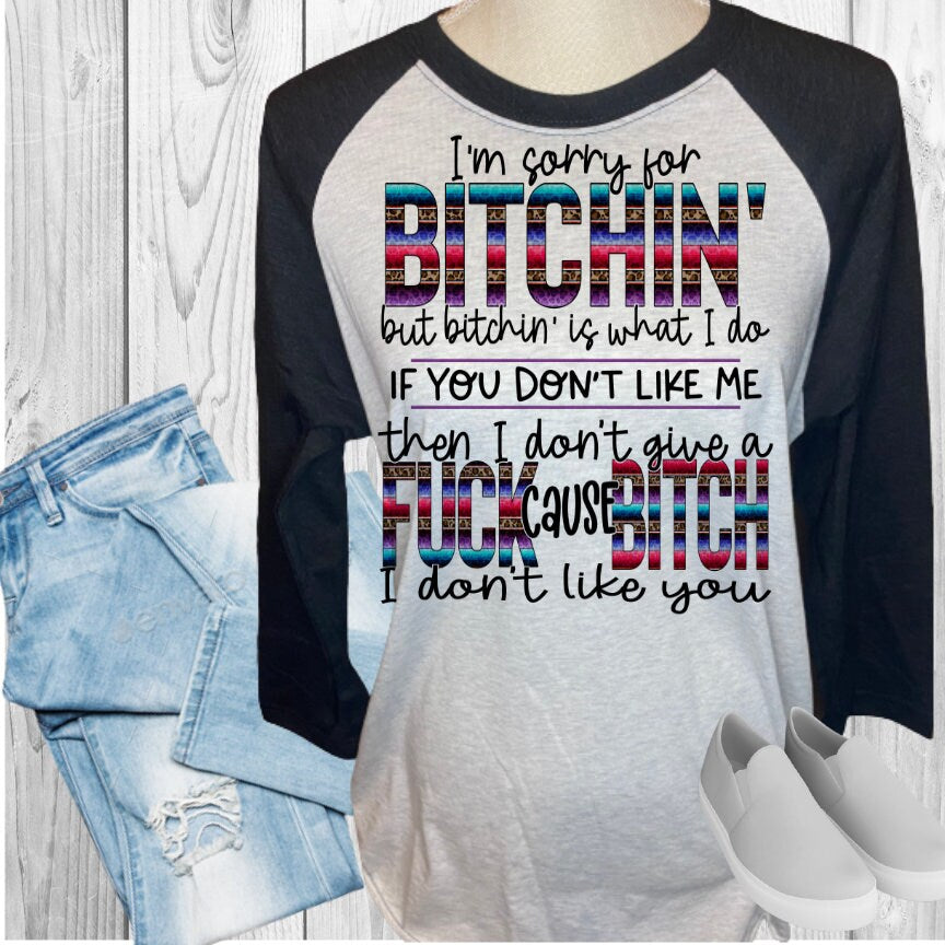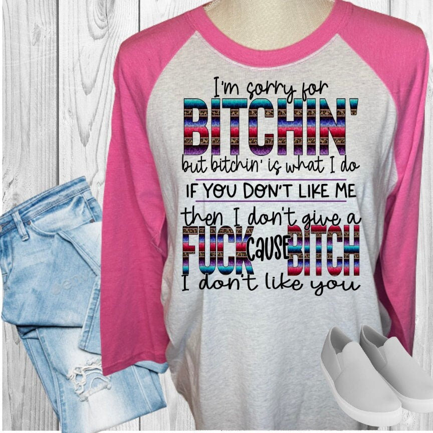 SORRY FOR BITCHING I DON'T LIKE YOU Raglan Style Shirt Baseball T-Shirt Women's Tee Raglan Tee Colored T-Shirt Personalized Shirt Custom Tee